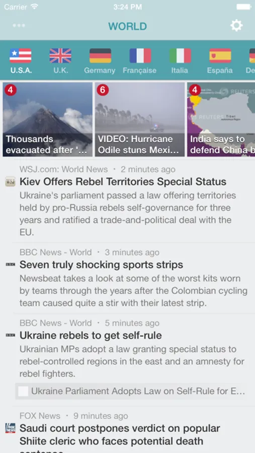 News is available from the U.S., Canada, UK, France, Germany, Italy, Israel, Spain, Australia, Japan and China. The user interface offers localization for seven languages: English, Française, Deutsch, Italiano, Español, 日本語 or עברית.