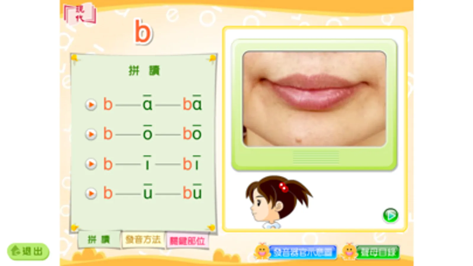 "現代普通話聲、韻母發音動畫" - 動態模擬、真人發音片段輕鬆簡單打好語言根基