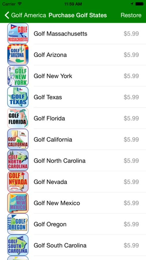 You will then have easy access to the individual state apps through In App Purchase. With this FREE app you will receive alerts for updates and new info on individual state apps and golf information.