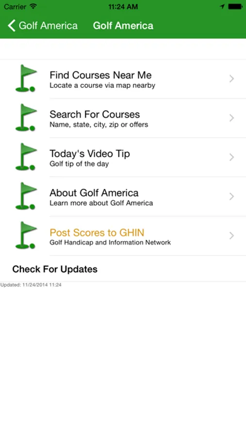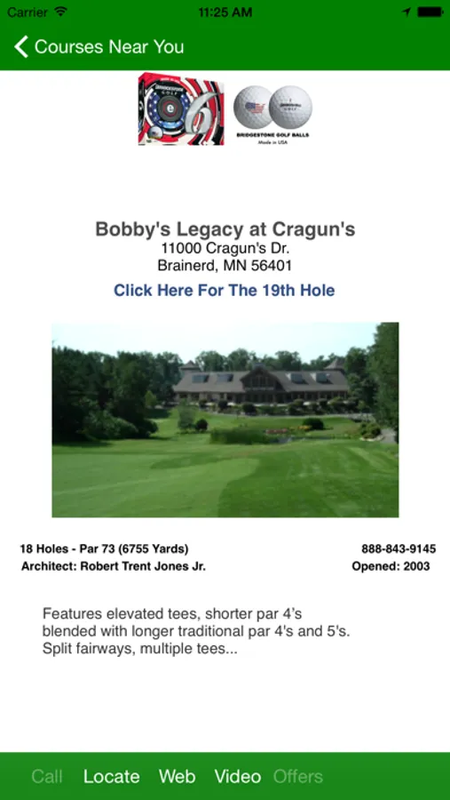 Golf America is our introductory app and is free. This app introduces you to the functions of our comprehensive state golf apps. Courses on the Golf America app will change frequently, and will always include some 100 or more of the top courses in America with one-touch call to the course and “Locate” to find directions to the course. It is the gateway app to our state golf apps. These apps include virtually every course within that state with these and more functions. Video tips from top instructors are also included with Golf America and the state apps.