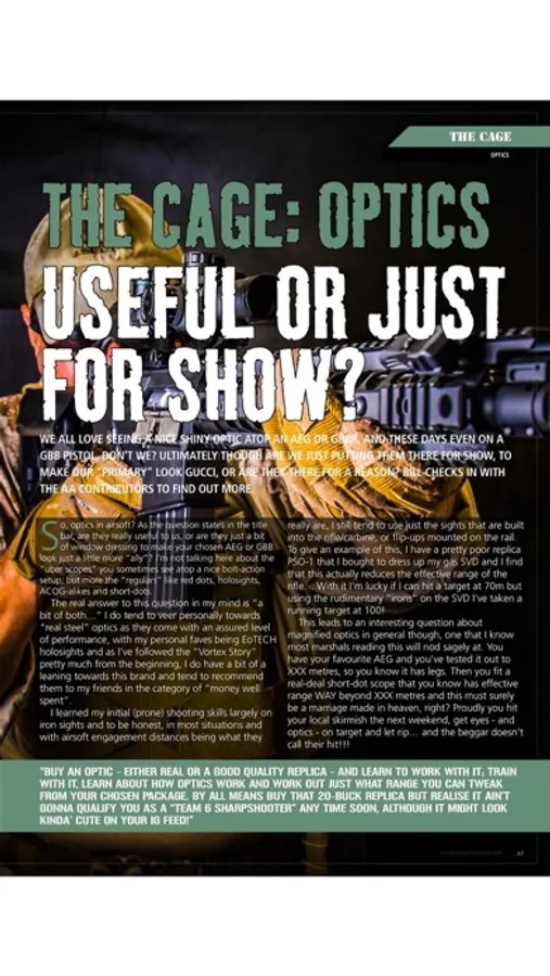Airsoft Action’s focus is to inform, excite, challenge and entertain at all levels of experience, edited by Nigel Streeter, founding editor of the successful paintball magazine, Paintball Monthly.
