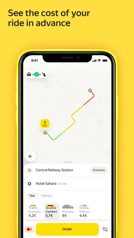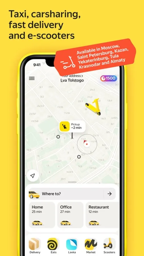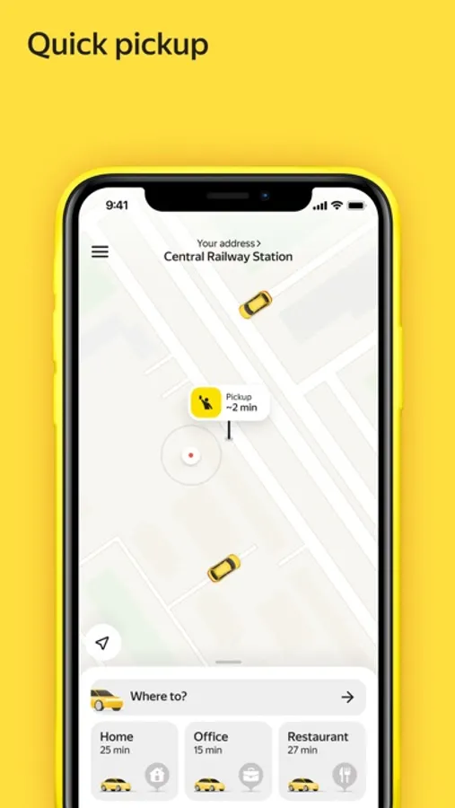 Yandex Go uses smart algorithms built on live traffic data to connect riders with drivers who can reach them fastest. Depending on your location, the app will also suggest alternative pickup points to help lower your fare.