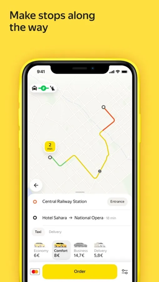 Request a ride with multiple destinations, like if you’re dropping your kids off at school, picking up a friend on the way, or need to run a quick errand. Yandex Go maps all your stops on one route and calculates the fare for the entire trip upfront.