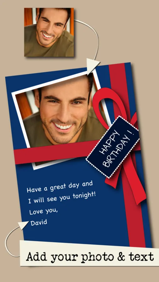 + Share your card instantly via messaging, facebook, e-mail, twitter, or save it to your camera roll to send it via even more third party services.