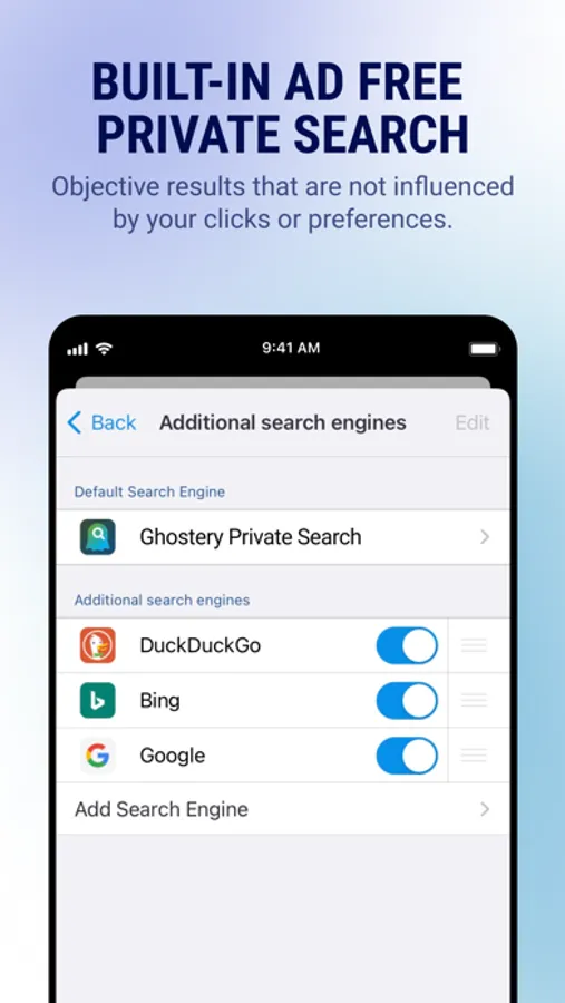 Enjoy fast, private browsing with Ghost Tabs (incognito windows). Browse the internet without saving your history.