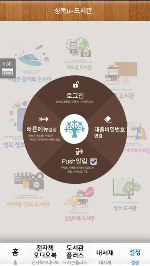 성북u-도서관은 성북정보도서관, 아리랑도서관, 해오름도서관, 종암동새날도서관, 서경로꿈마루도서관, 석관동미리내도서관, 달빛마루도서관, 정릉도서관, 청수도서관, 월곡꿈그림도서관, 아리랑어린이도서관, 성북이음도서관, 장위행복누림도서관, 성북길빛도서관, 오동숲속도서관을 하나로 통합한 전용 어플리케이션 입니다.