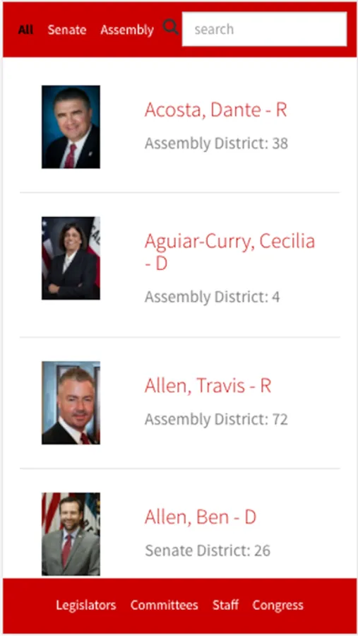 Users can use this app to access an up-to-date list of legislators, their party and the districts they represent.