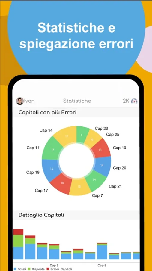Puoi anche monitorare le tue statistiche ed esercitarti sui Quiz più difficili, divisi per capitoli o per errori. Scegli tra Quiz Patente A, B, AM, CQC, CQC aggiornato 2022, Superiori e Revisioni di ogni patente.