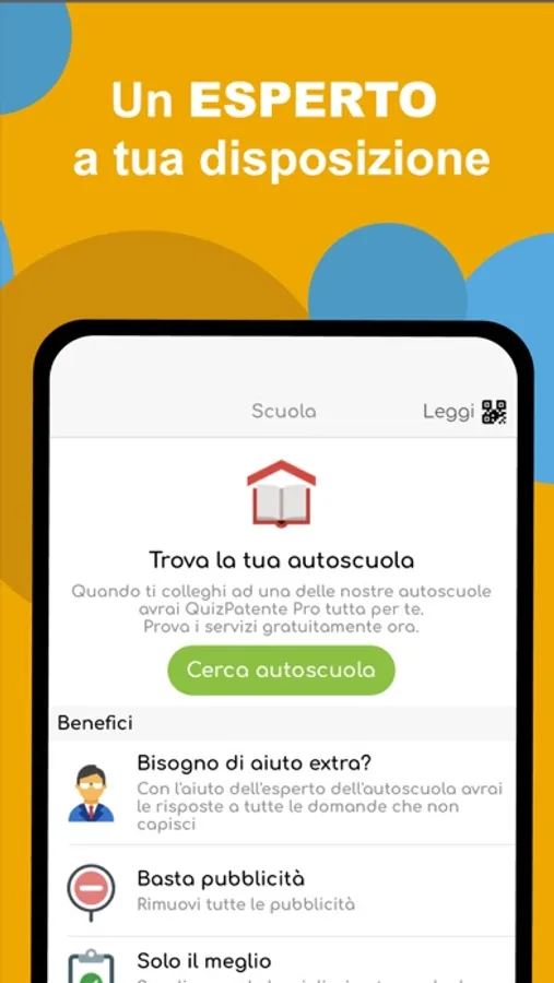 Abbiamo studiato un allenamento giornaliero continuo e costante per migliorare il tuo apprendimento. Cerca l’autoscuola del nostro circuito più vicina per sbloccare la versione PRO più velocemente e avere l’aiuto dell’Esperto oppure scegli tra i vari piani a pagamento in App.