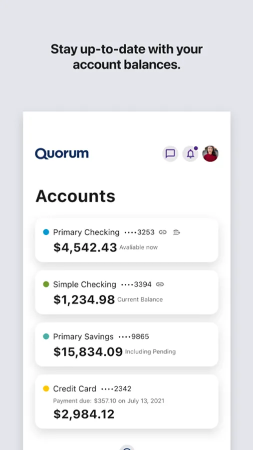Quorum's free Mobile Banking app brings the convenience and dependability of a credit union to your mobile device. You can access and manage your accounts, make deposits, locate ATMs and more.