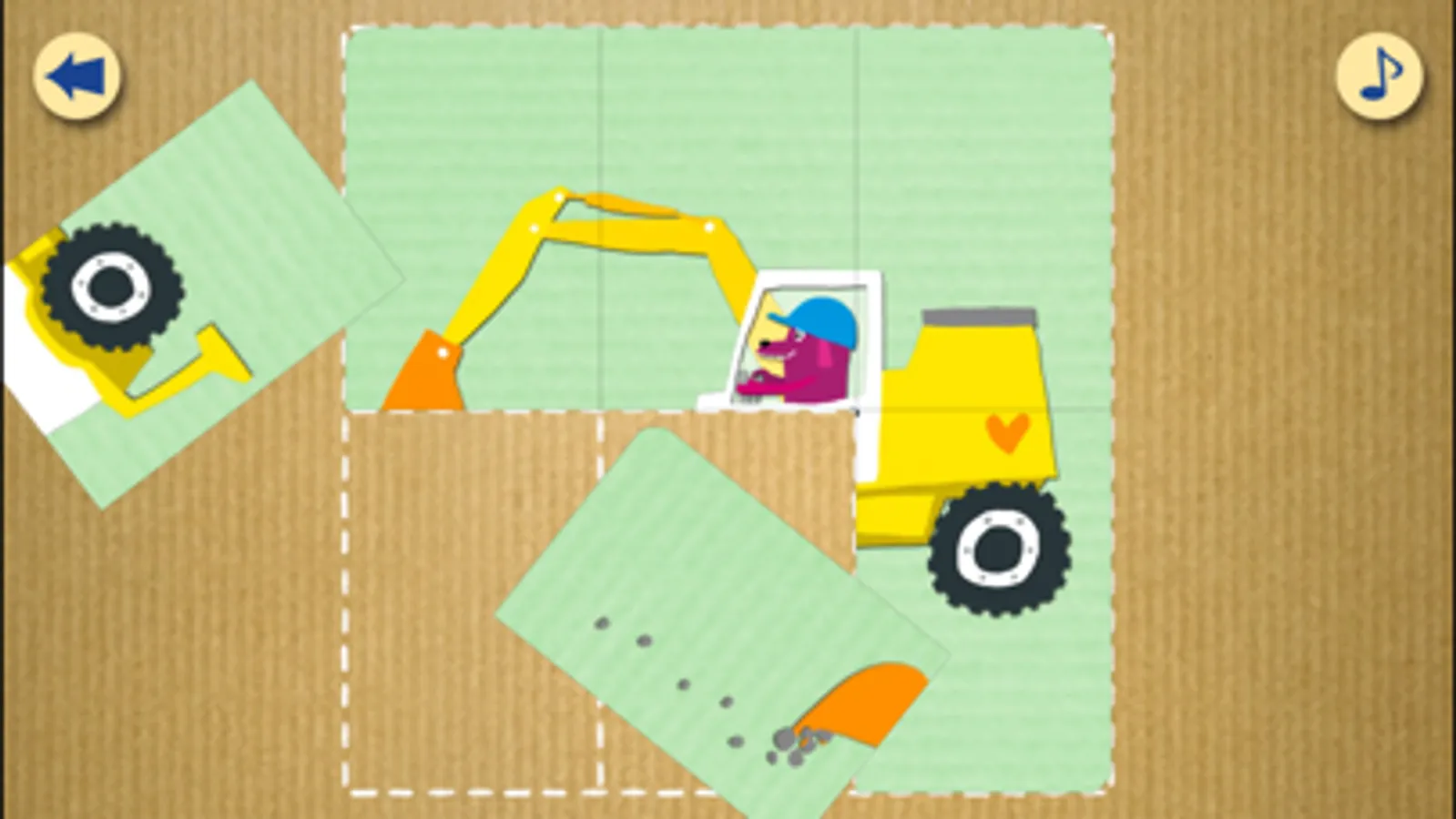 Choose your favorite vehicle. Choose the level of difficulty that is right for you. The default setting is 4 pieces – in our opinion, this is ideal for preschool aged children. Drag the puzzle pieces with your finger and rotate them with two fingers.