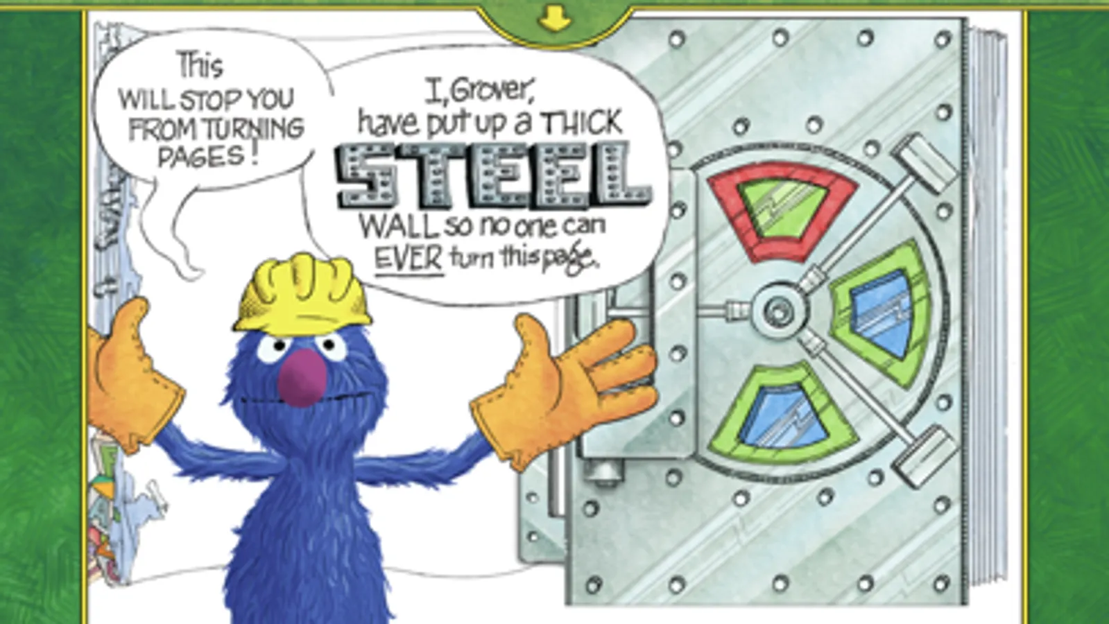 In this sequel to the best-selling, chart-topping Monster at the End of This Book app, Grover invents silly, giggle-worthy ways to prevent young readers from getting closer to another monster hiding at the end of this story. But an ever-curious Elmo asks for your help to slip past Grover every time.