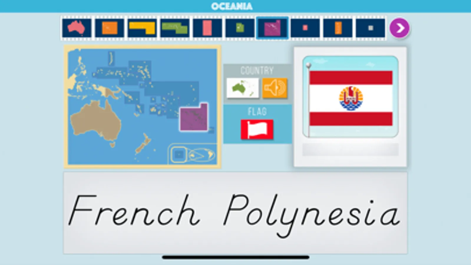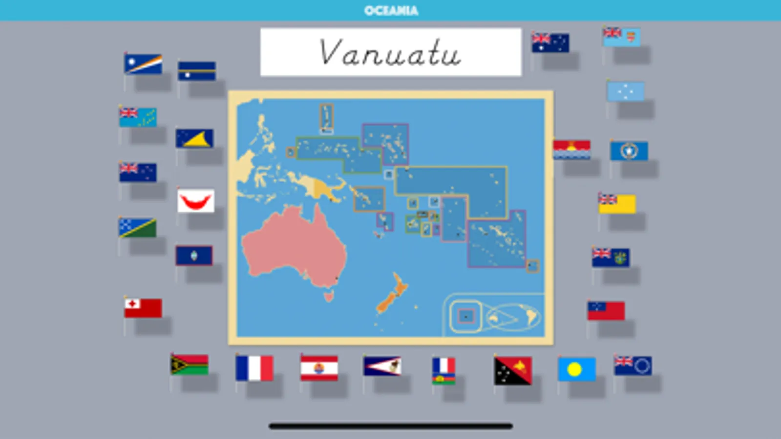 Learn the names and locations and flags of all the countries in Oceania with this app that beautifully complements the geography materials used in the Montessori Classroom!