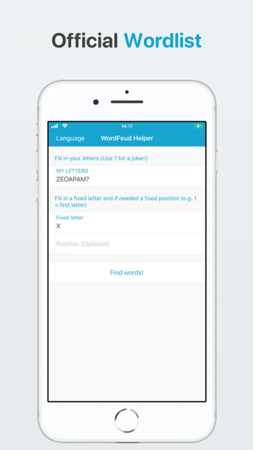 This App uses the official wordlist and it is already installed within this app! No need for any internet connection afterwards!