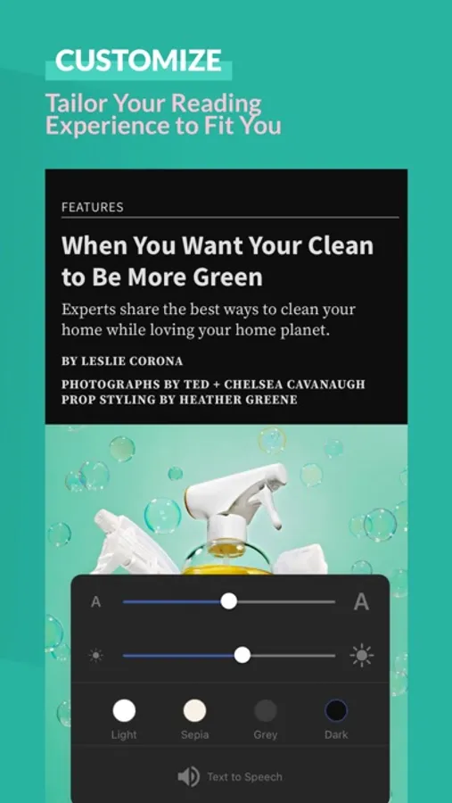 • TEXT TO SPEECH: Listen to your favorite magazines and all of your articles on the go