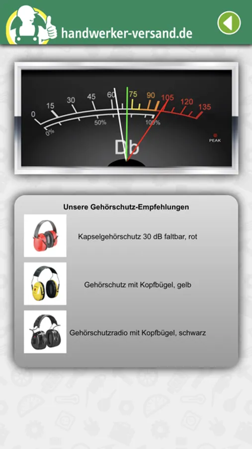 With this device you can perform decibel measurement. Furthermore, hearing protection recommendations are displayed.