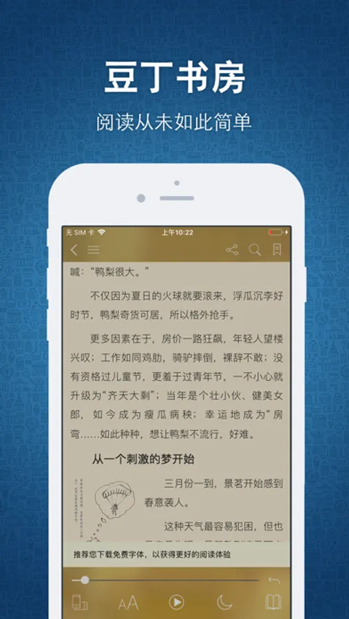 ·提供多种字号选择、背景配色选择、白天夜晚模式,让阅读更舒适;