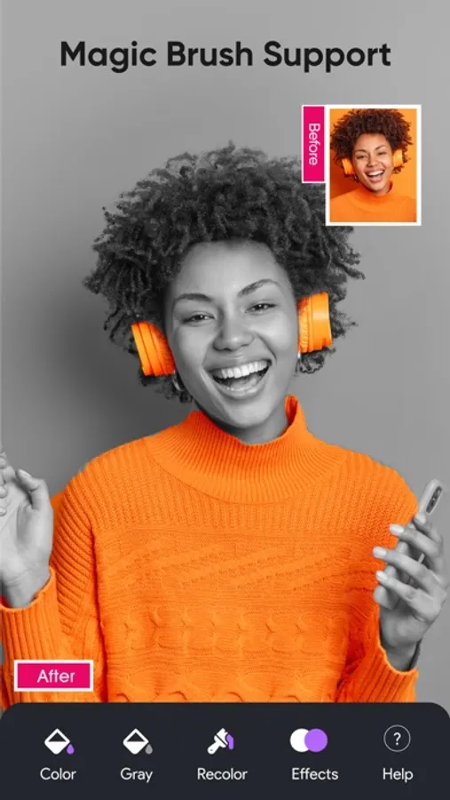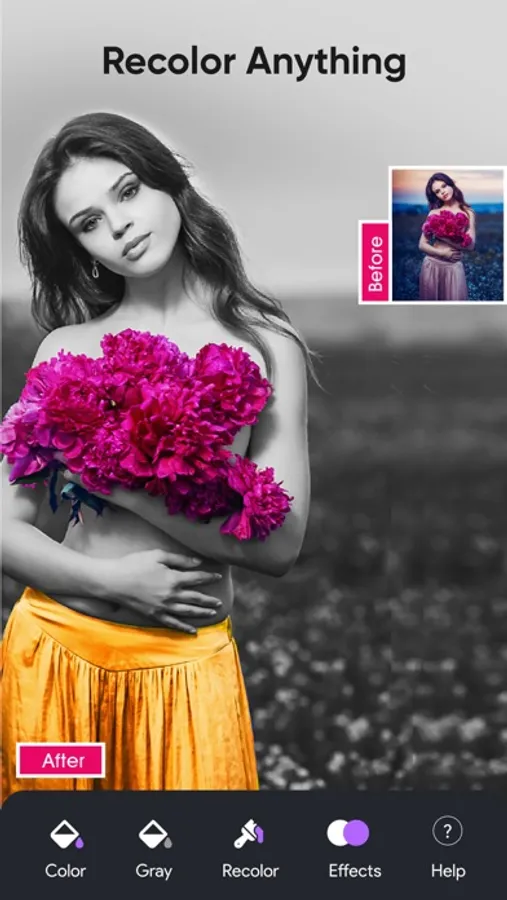 2. Colorize ,pick the color you like and paint your photos, check out the screen shots to fell what you can do with this app