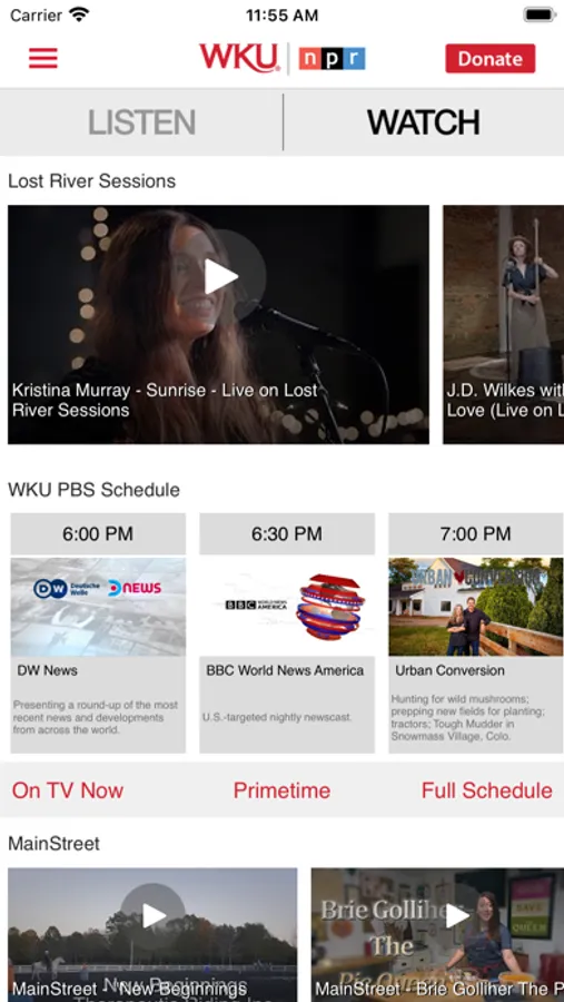 The WKU Public Media App allows you to watch and listen to all of WKU’s programs, Radio and TV! The app provides On-Demand content of all your favorite shows, live streaming of the radio channels, PBS Kids! content with parental controls, easy access to the live Radio and TV program schedule plus the ability to explore additional content!