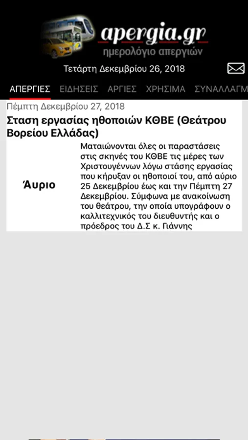 Apergia.gr goes mobile (Greek language)! Quick and free access to information on strikes/rallies in Greece