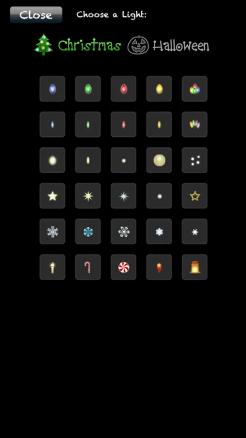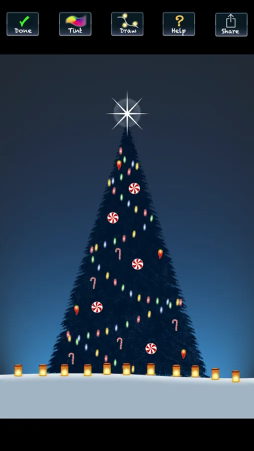 Decorate your photos with Christmas lights! Choose from your own photos, or one of the background pictures included... then use your finger to draw holiday lights on the image!