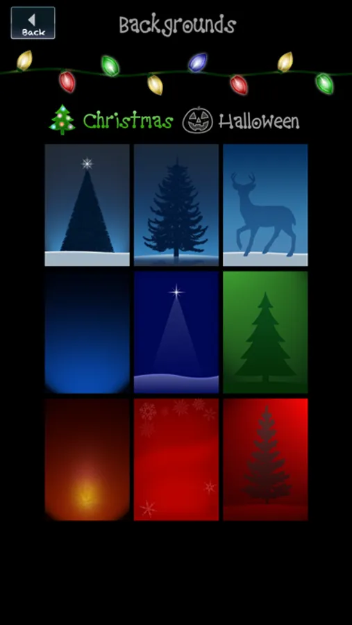 * 9 holiday-themed backgrounds, plus 3 spooky backgrounds