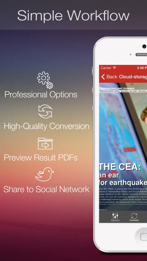The converted JPEG images can be emailed and printed, uploaded to Dropbox, Google Drive and Evernote, or simply saved on the iPhone/iPad.