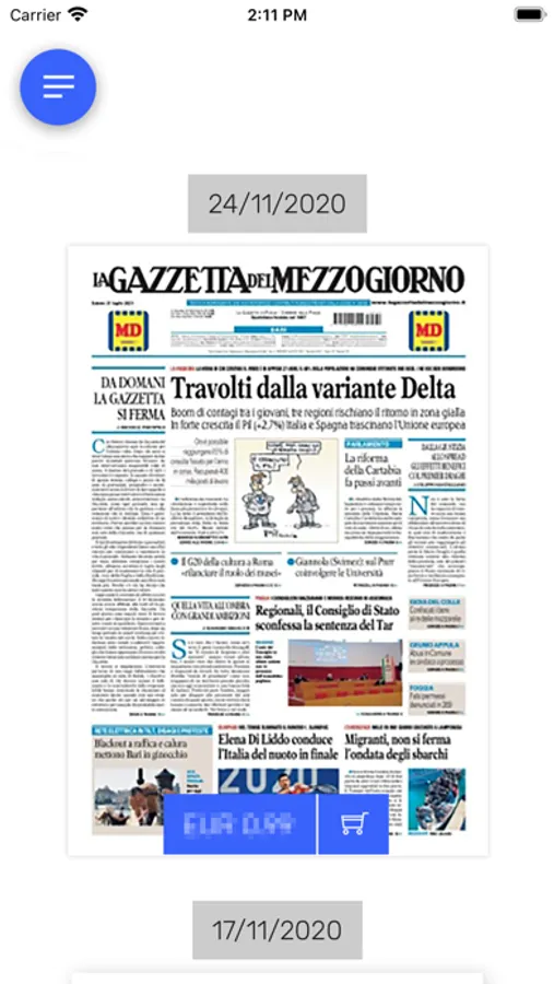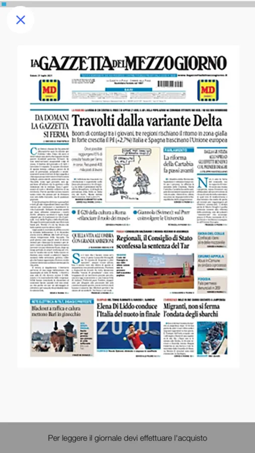 Puoi scegliere l’edizione del giorno, o un’edizione dell’archivio, e consultare gratuitamente la prima pagina o acquistare l'edizione completa. Sfogliando le pagine del quotidiano, ingrandendo i contenuti, ruotando il dispositivo, sarai libero di leggere in piena comodità e nella modalità preferita.
