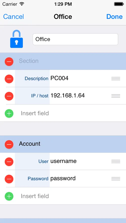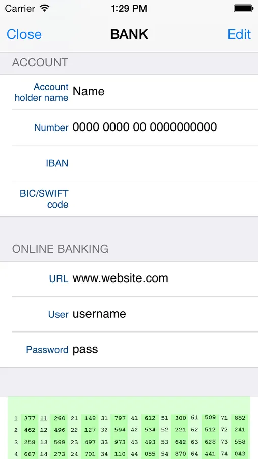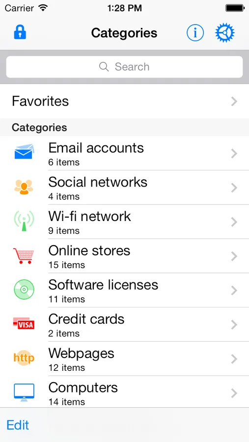 - Create items for different types of personal information: credit card numbers, account numbers, email accounts, and more.