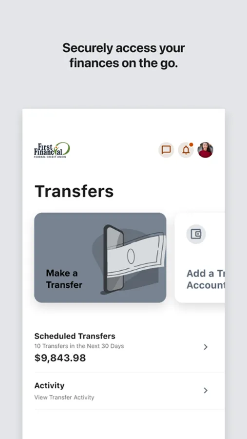 Manage your account on the go quickly and securely with First Financial’s mobile banking app. The new app is easy to navigate so you can get your banking done and then get back to your day!