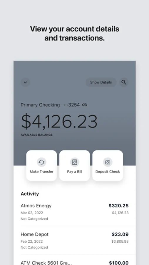 • Deposit checks using mobile deposit, saving a trip to a branch.