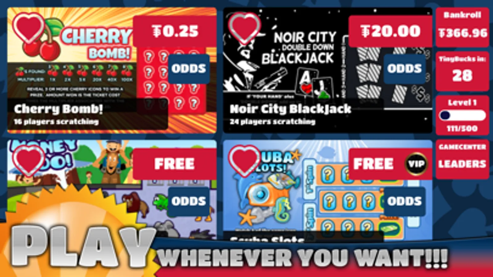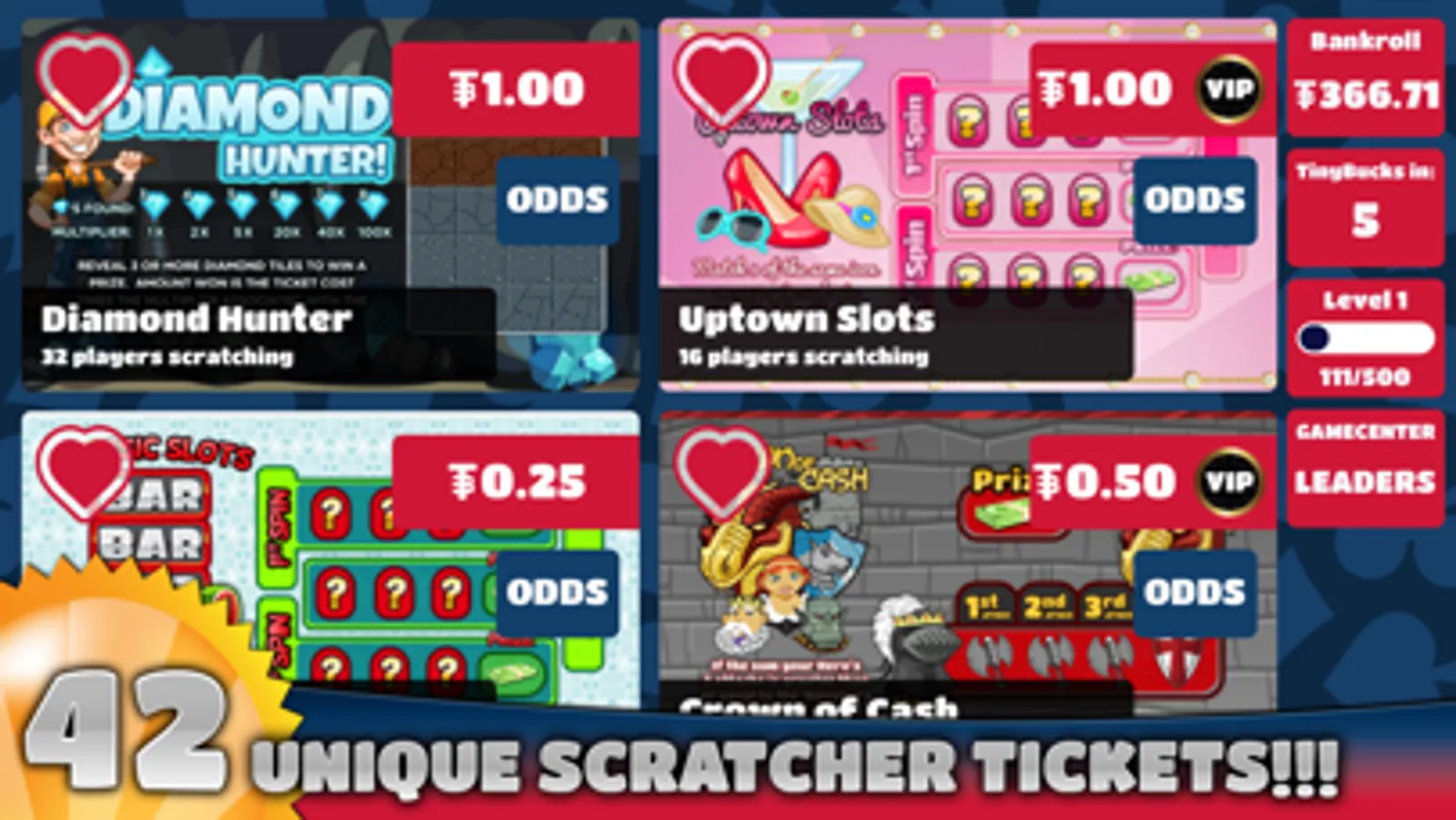 Level up by buying tickets and winning to get additional bonus amounts every time you win! Collect all the achievements and best your friends on the Game Center leaderboards for maximum enjoyment! Bottom line, if you like scratcher lottery tickets, you are going to love American Scratchers Lottery.