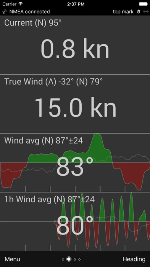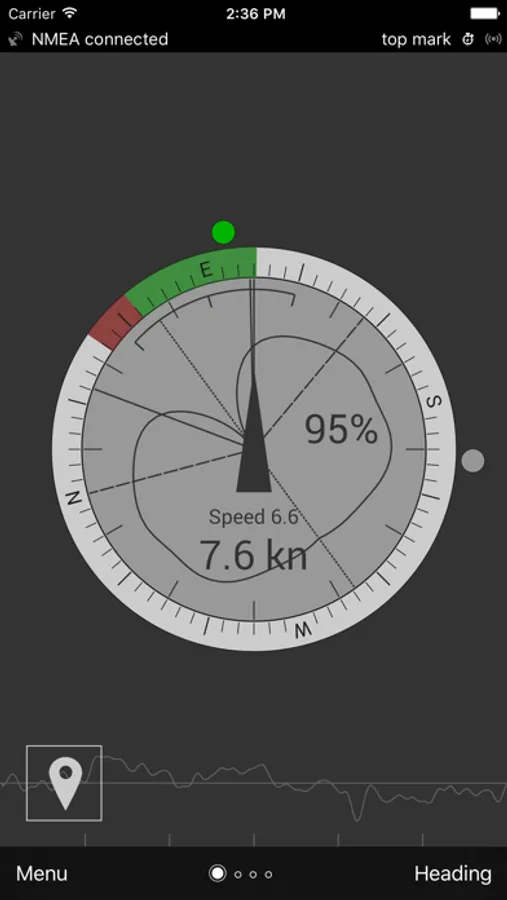 Every wind gust and lull affect the boat heading and is visualized in a “easy to read” shift bar on the top of compass rose and on the map.