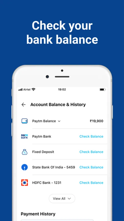 Paytm (पेटीएम), India’s #1 Payment App is trusted by over 30 Crore Indians. Download the Paytm app for a bank to bank money transfer via BHIM UPI & instantly pay at shops & online sites/apps like IRCTC, Flipkart, Uber, Zomato & Swiggy. Use Paytm for mobile recharge, Fastag recharge, DTH recharge, Movie Tickets, Postpaid bill payment, Utility bill payment such as Water, Gas, Electricity, Landline, Broadband and insurance. Invest in Mutual Funds, Digital gold & NPS, avail insurance, check free CIBIL credit score, buy now & pay later with Paytm postpaid. Make Rail e-ticket booking, book flights, & buses in a few taps.