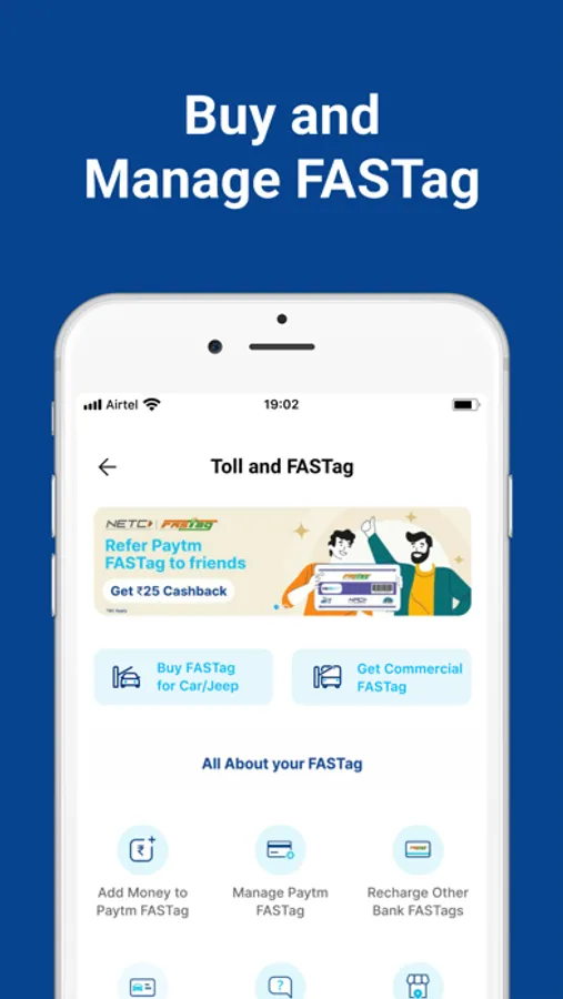 ● Buy & recharge FASTag for any vehicle using your Paytm Wallet