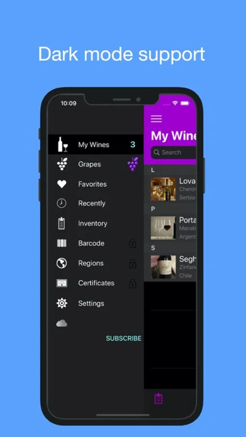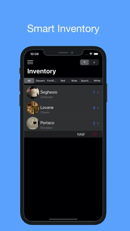 • New smart-Inventory, works with a drink button that automatically updates your total for each type of wine (white, rose, red, sparkling and fortified)