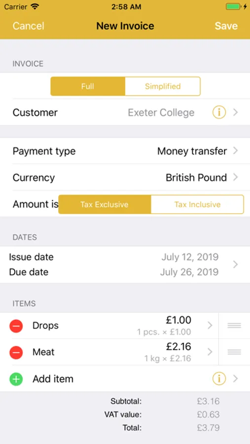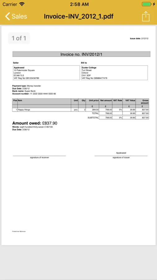 MyInvoice is most advanced software for sales, stock, customers and products management for iPhone and iPad. It was designed to be used at whole world with knowledge of local specifities like in European Union, USA & Canada. We support all kind of taxes like VAT, GST, compound and group taxes. Issuing invoices is very easy and fast - just 30 seconds is enough to issue an invoice. You can send it as PDF, print on AirPrint printer or on mobile thermal printers.