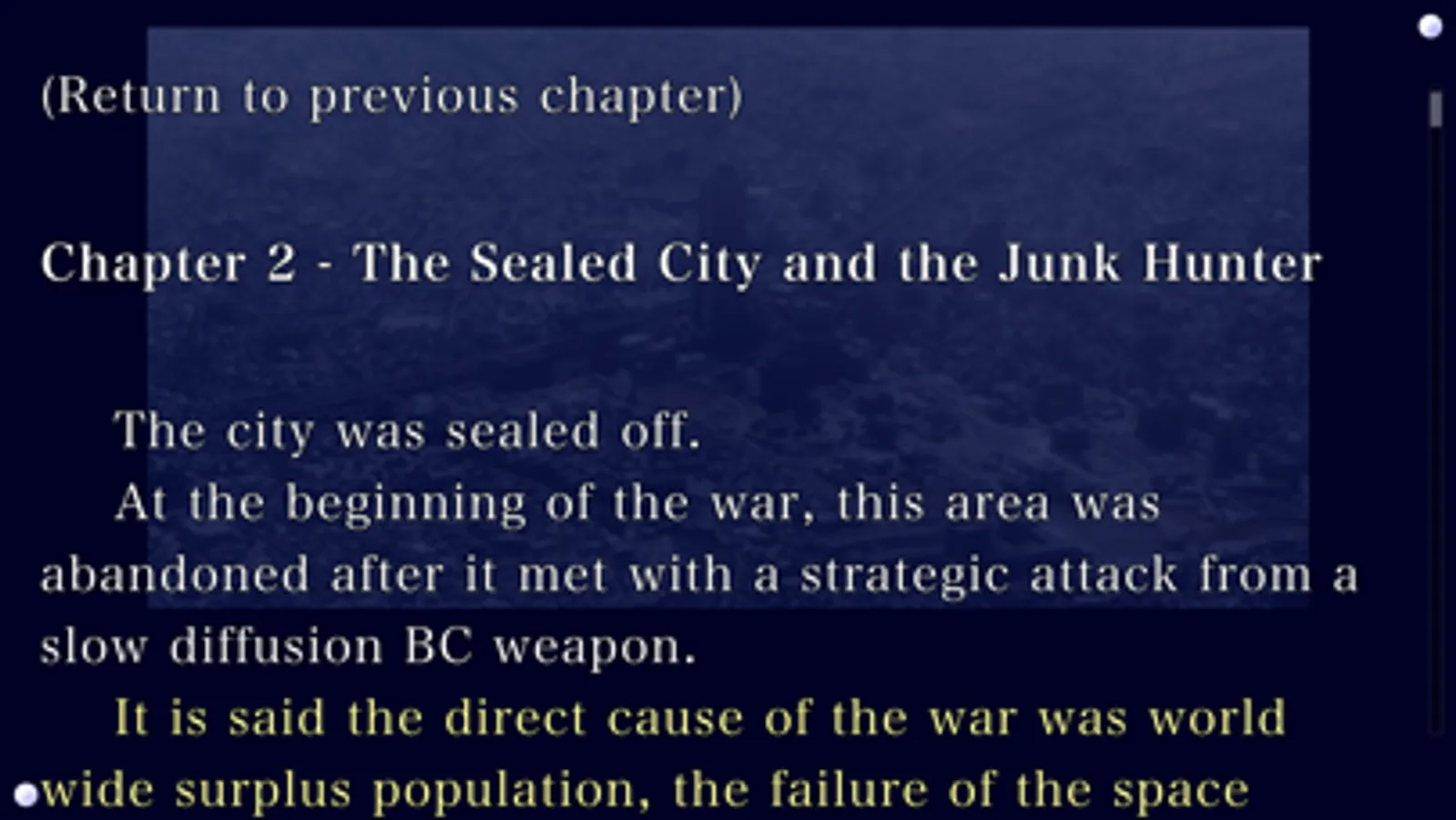 The Junk Hunter infiltrates a Sealed City, reputed to be the most dangerous places on Earth. In the center of the city, he discovers a pre-war Planetarium.