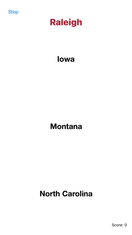 Quiz 2: given the name of a U.S. state, and you guess the name of it's capital city