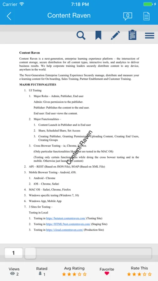 Designed as a B2B app for enterprise customers, the Raven360 mobile app allows authorized users to securely view their content on a mobile device and download content for offline viewing, where permitted.