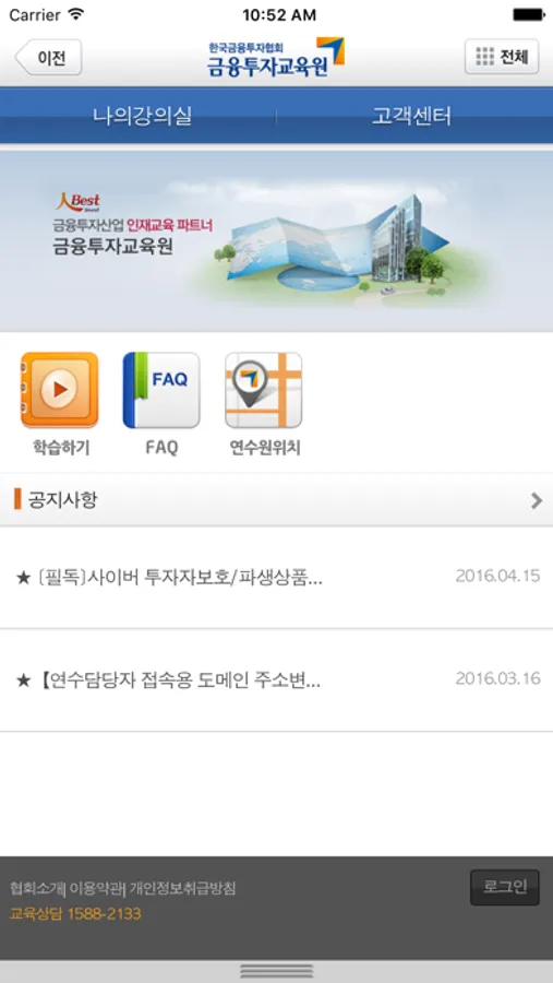 ▼ 스마트기기 또는 PC와 스마트 기기 간 연계학습도 가능- 회원가입 무관▼ 일반/전문/자격 과정 등 금융투자교육원의 모든 교육과정 정보 확인 가능▼ 핫이슈 과정 무료수강 가능▼ 기타 금융투자교육원 위치, 공지사항 정보 제공
