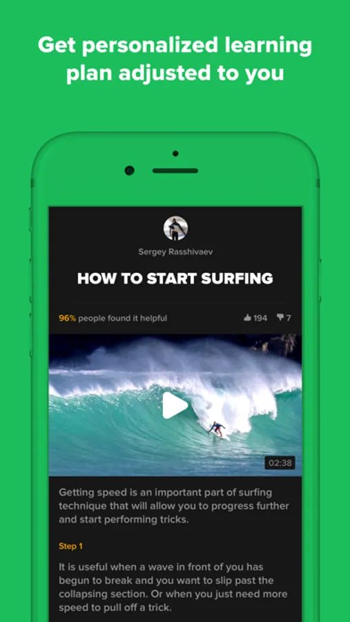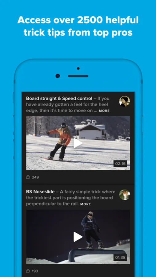 Learn by watching video tutorials for thousands of tricks from the top professional riders. Get a personalized plan which will easily adjust to your level and always hint which trick to try next.