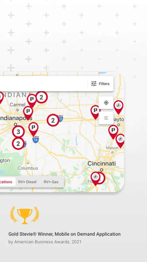 Filter locations by amenities, parking availability, fuel type, restaurants & food offerings, and more.