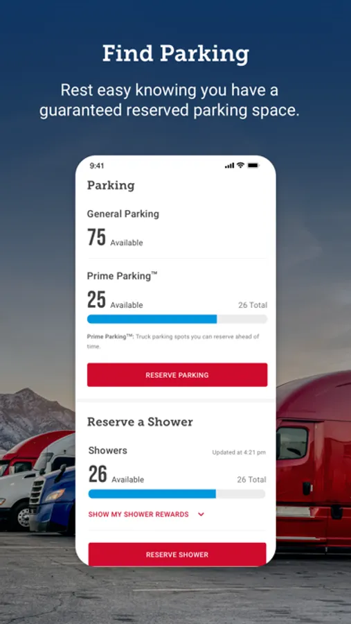 Professional drivers earn free showers when you fuel and can track your shower credits in the app.