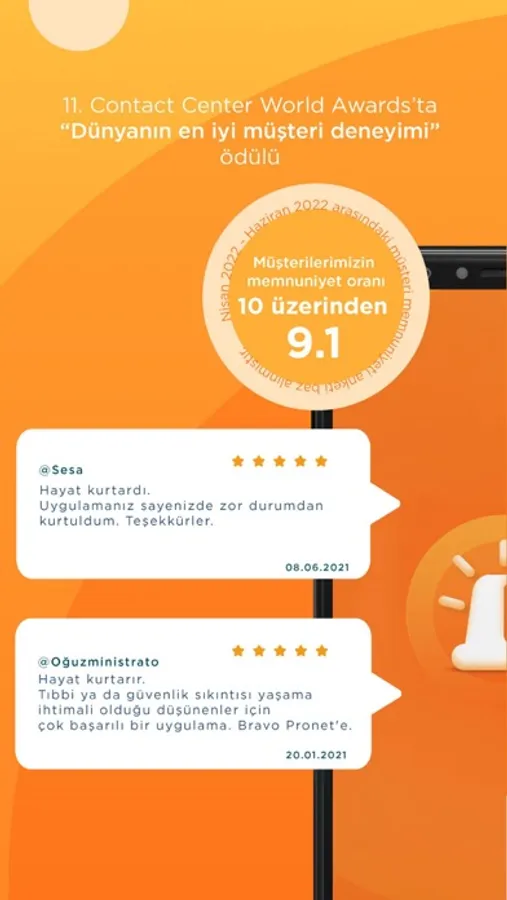Ø Pronet Alarm Haber Alma Merkezi ortalama 10 saniye içinde sizi arar, size ulaşamazsa acil durum kişi listenizdeki yakınlarınızı sırayla arar.