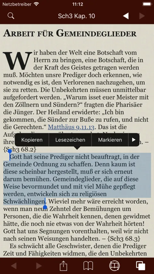 Anlegen von Markierungen zu Bibelstellen oder Absätzen der Schriften von Ellen G. White