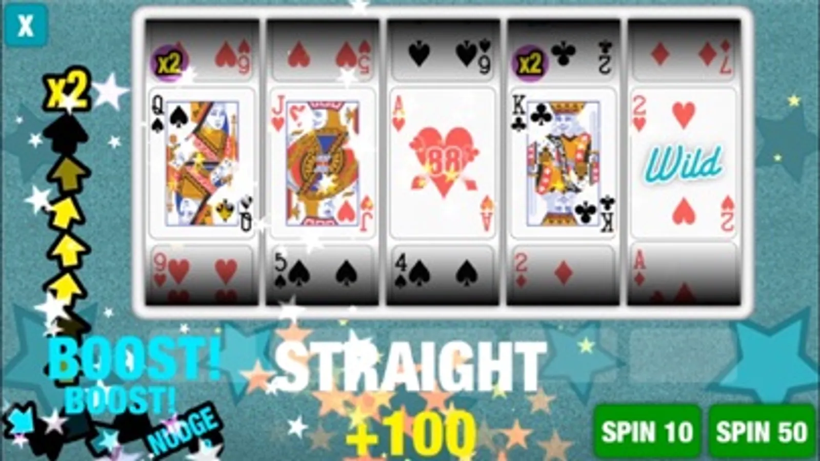 Reel Wild Poker 88 is an addictive slot machine with all the noise and thrills you'd expect! Smooth animated reels with big cards and quick responsive game play. It's free to start playing with 500 credits included, so try your luck!