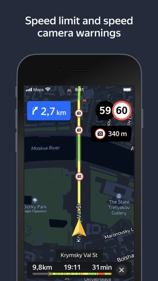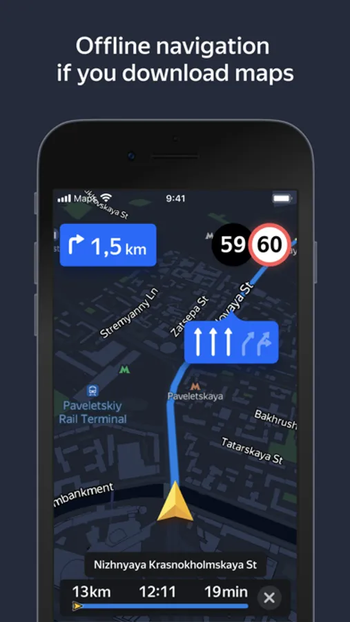 It helps you find your way around the city with fast, convenient directions that avoid traffic jams and road closures. If road conditions change, Yandex Navigator adjusts your route on the fly.