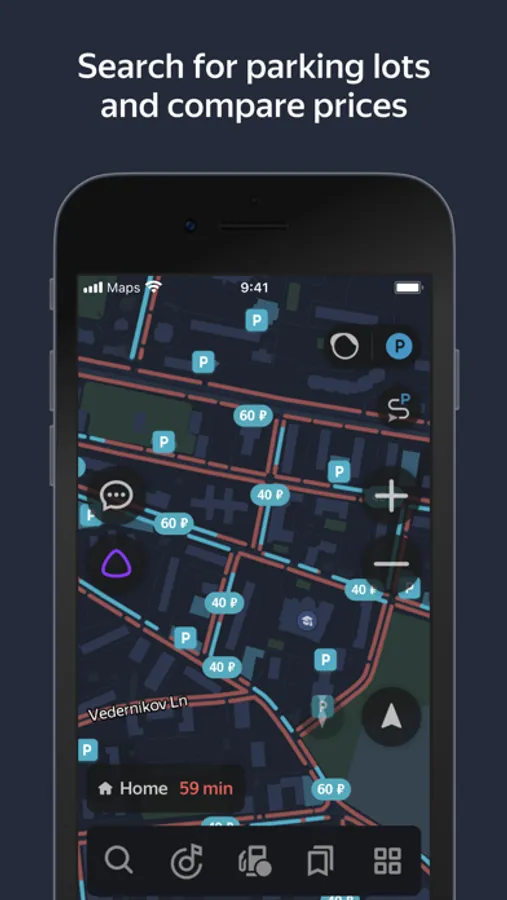 Look for convenient parking spots near your destination. And since you can pay for them right from Yandex Navigator, you don’t need other apps.