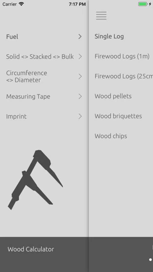 The fuel type "Single Log", offers a selection of different types of calculation: